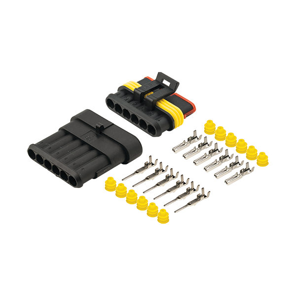 Contains: 1x 6-way male and 1x 6-way female connector, 6x male and 6x female pins and 12x rubber seals.